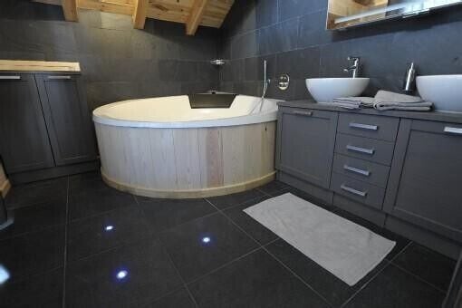 Vous trouverez cinq douches à l'italienne dans le chalet ainsi qu'une très grande baignoire dans une suite parentale au troisème étage.